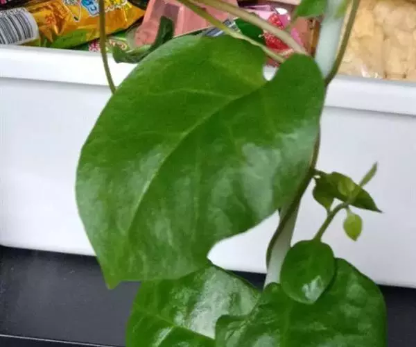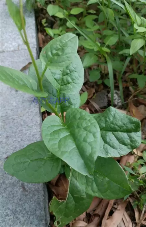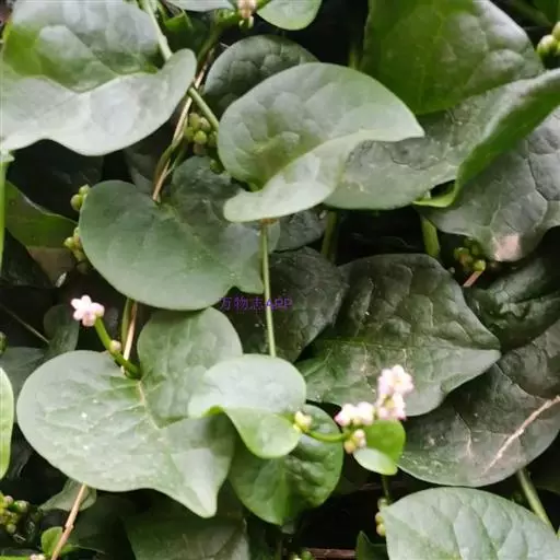 落葵 一年生缠绕草本。茎长可达数米,无毛,肉质,绿色或略带紫红色。