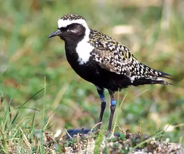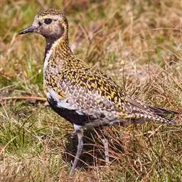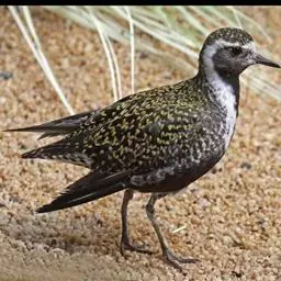 金鸻(学名:Pluvialis fulva):属中型涉禽。体重98-140克,体长230-252毫米。夏季全身羽毛大都呈黑色,背上有金黄色斑纹。翅膀又尖又长,飞行能力很强,秋天迁徒飞到很远的地方去越冬。跗蹠修长,胫下部亦裸出。中趾最长,趾间具蹼或不具蹼,后趾形小或退化。翅形尖长,第1枚初级飞羽退化,形狭窄,甚短小;第2枚初级飞羽较第3枚长或者等长。三级飞羽特长。尾形短圆,尾羽12枚。