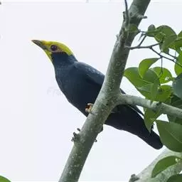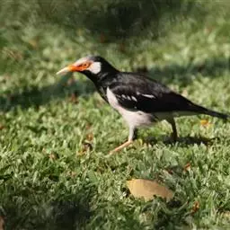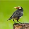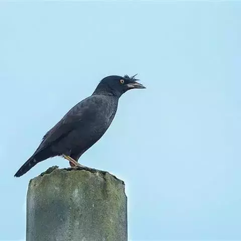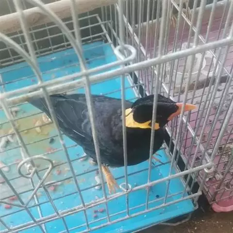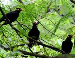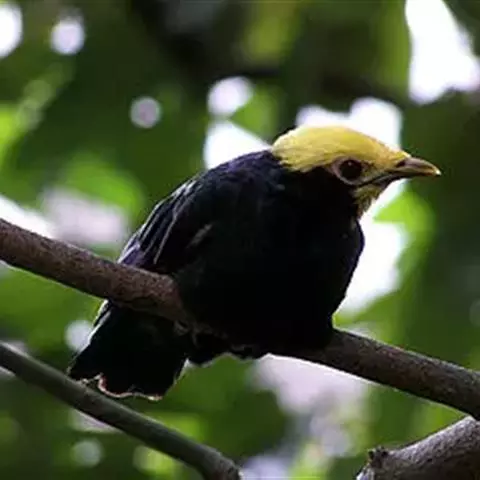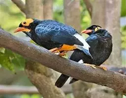 金冠树八哥为椋鸟科树八哥属的鸟类。体长约23厘米,闪辉黑色。特征为具翼斑及颏黄色,脸颊裸露皮肤粉黄色。…