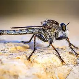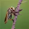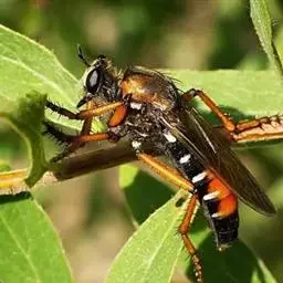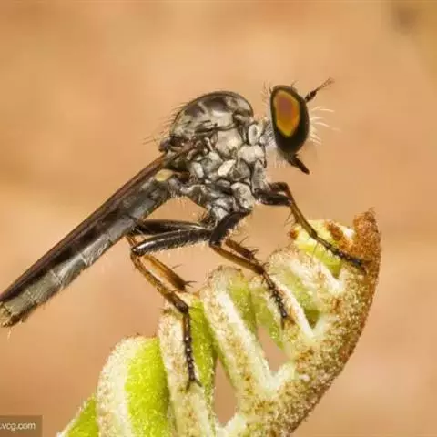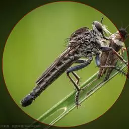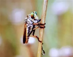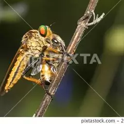 牛虻虫 食虫虻除了身体强壮、飞行快外,还得有良好的信息接收系统,即视力要好。它具有大而亮的大眼睛。视力如此重要,强大的保护是必须的。为了防止猎物挣扎而损伤眼睛,食虫虻复眼的周围特别在前方长有众多粗大的刚毛,就是为了保护眼睛不被伤害。捕捉到猎物后,它们用消化液注入到猎物中,把猎物消化成液体后再吸入。