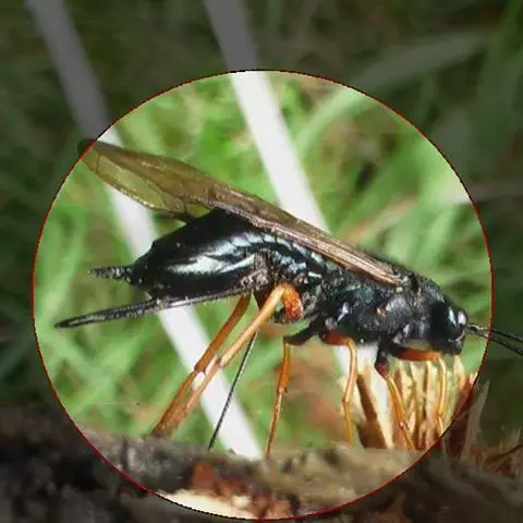 虻 东北林区俗称“瞎碰”或“瞎虻”,头大,半球形,或略带三角形。复眼很大,某些雄虫接眼式或离眼式;棵出或常有毛,常有绿红及其它金属闪光;单眼有时消失。触角有长、有短,多向前伸出,基部二节分明,端部3-8节愈合成角状。口器适于刺螯及吸收。下颚阔叶状;下颚须2节,片状有毛;上颚强大;下唇或喙直而短或有细长者。胸大有毛。翅大透明,或着色彩。亚缘室二个,后室五个,基室大形,臀室一般封闭,前缘脉围绕全翅缘,腋瓣大形。足强壮,胫节有时扁阔,中胫有二距,后胫有时缺距,有爪垫及爪间突。腹部宽有毛,扁形、7节,交尾器隐蔽。卵长针状,产叠成块并盖以胶质,易被黑卵蜂类所寄生,往往被误认为三化螟卵块。