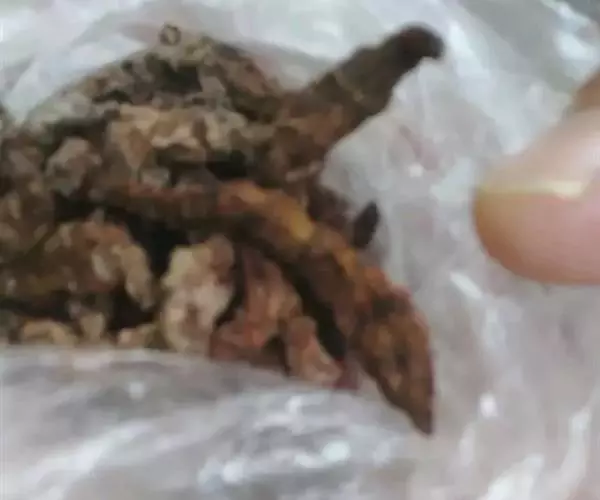 1、茅苍术:呈不规则连珠状或结节状圆柱形,略弯曲,偶有分枝,长3~l0,直径1~50px。表面灰棕色,有皱纹、横曲纹及残留须根,顶端具茎痕或残留茎基。质坚实,断面黄白色或灰白色,散有多数橙黄色或棕红色油室,暴露稍久,可析出白色细针状结晶。气香特异,味微甘、辛、苦。