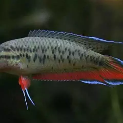 叉尾斗鱼,体形与圆尾斗鱼相似。腹鳍有1根分节鳍条特别延长,雄鱼鳍条延长尤甚,尾鳍叉形。…