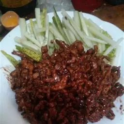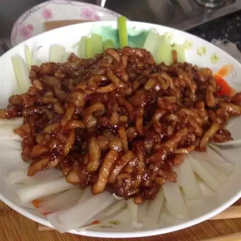 京酱肉丝,是一道知名度很高的菜肴,它是北京菜中的经典代表菜之一。制作时选用猪瘦肉为主料,辅以甜面酱…