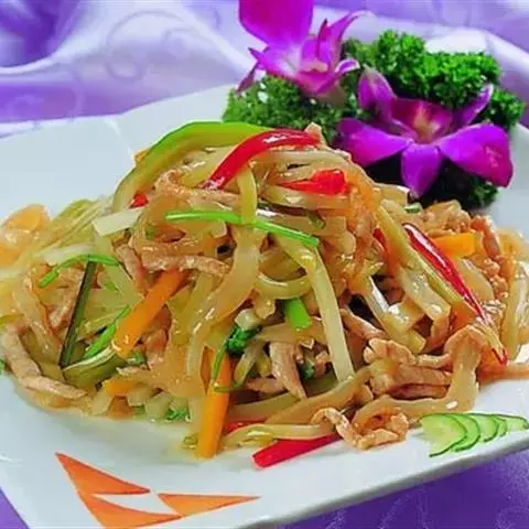 榨菜肉丝是四川省传统的名菜,属于川菜。此菜在四川家庭和中低档饭馆常年制作,原料易得,操作简便,咸淡…