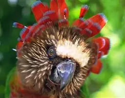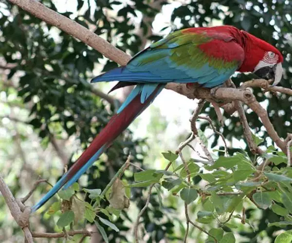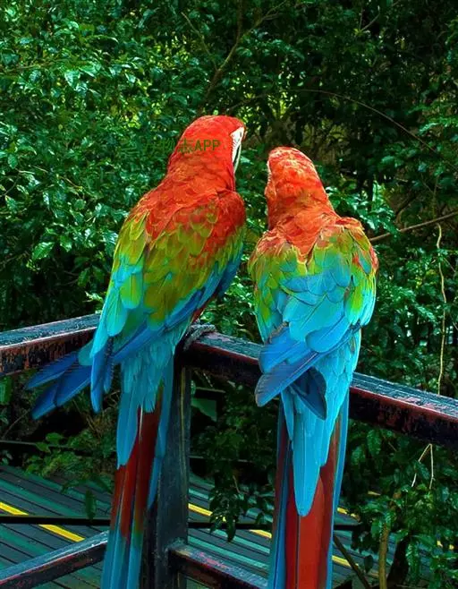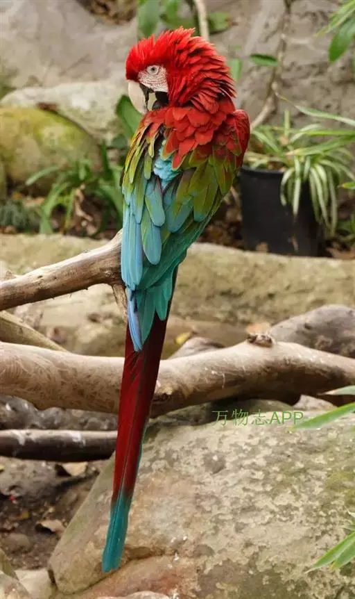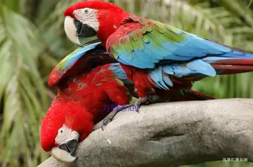 红绿金刚鹦鹉(学名:Ara chloropterus):是鹦鹉科、金刚鹦鹉属的大型攀禽。体长90-95厘米,翼展125厘米,体重1050-1700克,寿命80年。成鸟的头、颈部、胸部和翕两侧是美丽的红色羽毛。肩和三级飞羽绿色。背部,臀部和尾巴上面是蓝色。尾巴是红色和蓝色相间。尾覆羽浅蓝色。下颚骨的上层主要是白色或象牙色,较低的下颌骨黑色。面颊是裸露的皮肤,覆盖着红白色的羽毛呈现蛇状细纹。虹膜淡黄色。脚黑色。