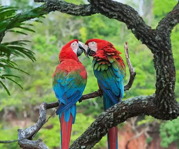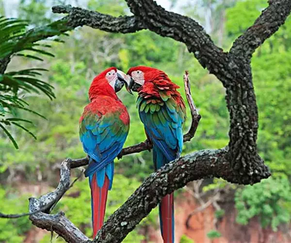 红绿金刚鹦鹉 红绿金刚鹦鹉通常生活在北部热带森林,在海拔450-1400米之间的高度可以发现它们的踪迹。通常会避开定期被淹没的沼泽地区和雨林,而将这种湿地栖息地留给了其同属近亲的蓝金刚鹦鹉。在山脉的南部和东部,它占据了更多的林地,包括沿河的落叶林或长廊林。喜欢飞生活在开阔地带。生存和分布在很大程度上取决于作为筑巢地点主要提供者的大树和岩石峭壁的存在。另一方面,红绿金刚鹦鹉会远离城镇、村庄和人类所有居住地,因为它们是密集狩猎的受害者,并且经常被捕以从事鸟类交易。这种鹦鹉大部分时间都生活在海拔1000米以下的地方。在委内瑞拉可以上升到1400米。