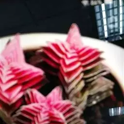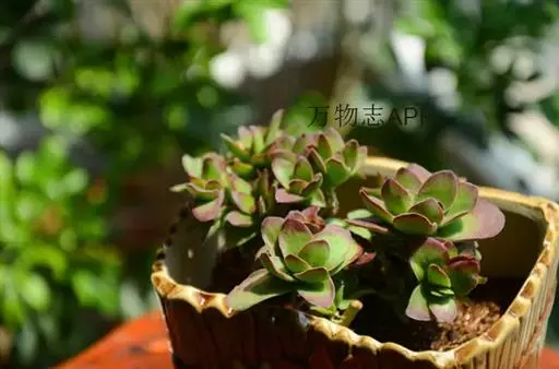 叶子表面宽厚,富肉质感且带有磨纱质感,看像石头质地;开红色小花,生于植株顶部,倒伞形密生,形状像花…