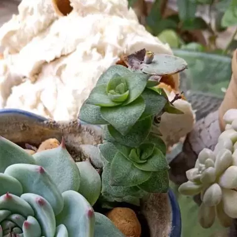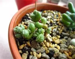 天狗之舞繁殖一般就是砍头,取健康有生长点的枝条,按照3至5厘米高左右一段剪下,晾干伤口扦插,也可以直接扦插在干的颗粒土中,几天后少量给水,是非常好繁殖的一个品种,叶片和叶片间容易长出很多小根。碰到合适的土壤就会把根牢牢扎在土里。砍头繁殖还有一个好处就是可以让母株得到更好的造型,有心的花友可以尝试尝试,砍头后的地方会重新萌发新的生长点,有的会萌发2个枝条。