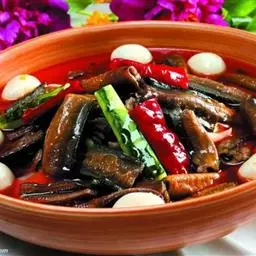 把辅料过油时,最后才把红椒过油,防止有颜色的蔬菜长时间煎炸退色。