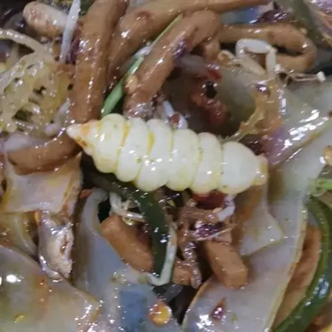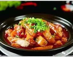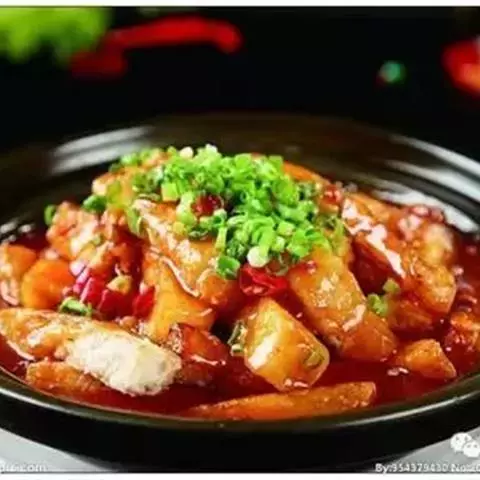 4、将豆腐放入锅中,翻炒,加清水,盐,炖至水快烧干,加白糖,味精,湿淀粉旺火收汁,撒上胡椒粉,即可出锅