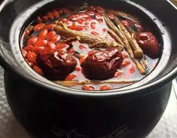 3.锅里留1汤匙油,中火加热至5成热时,放入蒜末煸香;倒入足量水,放入泡好的瑶柱,大火烧开,转小火煮20分钟;