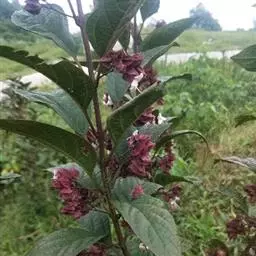 灌木,高1—1.5(-2)米;小枝幼时近四棱形,后变近圆形,皮孔不明显,被短柔毛。产贡山、德钦、麻栗坡、西畴、广南等地,海拔1200—2800米的沟边杂木林或路边。我国四川、贵州、湖南、广西、广东、福建、江西、浙江等省也有。