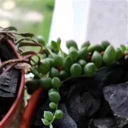 翡翠珠,是菊科千里光属的多年生常绿肉质草本植物。茎纤细,全株被白色皮粉;叶互生,较疏,圆心形,深绿色,…