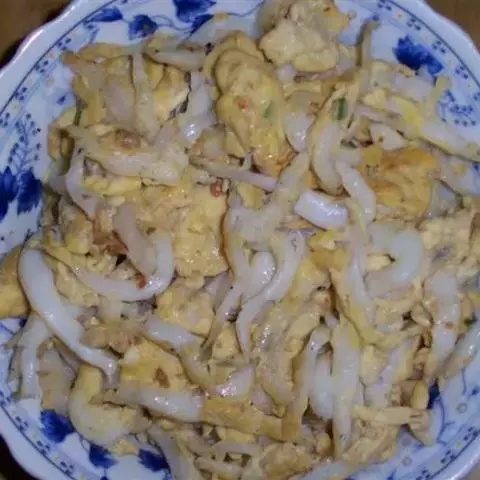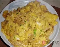 茉莉花炒蛋是一道由茉莉花、鸡蛋、白酒等做成的美食。