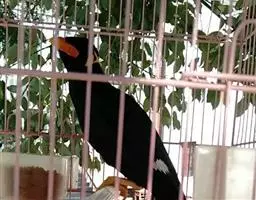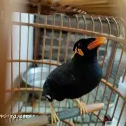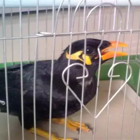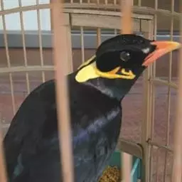 金冠树八哥为椋鸟科树八哥属的鸟类。体长约23厘米,闪辉黑色。特征为具翼斑及颏黄色,脸颊裸露皮肤粉黄色。…