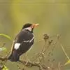 斑椋鸟:是中等体型的黑白色椋鸟,体长24厘米。头顶、头侧、翼斑、腰及腹部白色,喉、胸及上体余部黑色,…