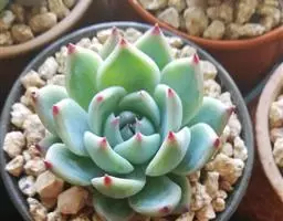 红稚莲是景天科石莲花属的多肉植物。叶片长匙形,先端稍尖,叶面光滑无粉,叶背有凸起的龙骨,…