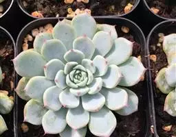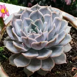 蓝石莲是景天科、拟石莲花属的多肉植物。茎部粗壮,成熟植株茎部木质化。叶片莲座型密集排列,株径不会很大,…