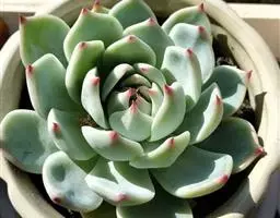 吉娃莲,景天科拟石莲花属,别名:吉娃娃,吉娃莲,植株小型,无茎的莲座叶盘非常紧凑。卵形叶较厚,带小尖,…