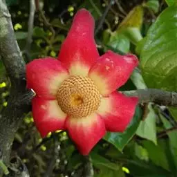 攀援灌木,长达6米;小枝被黄色粗毛。叶革质,椭圆状长圆形至长圆形,长6-12厘米,宽2.5-4厘米,顶端急尖或钝,基部近圆形或稍偏斜,两面无毛,或仅在下面中脉上被疏柔毛,叶面有光泽;侧脉每边8-10条,两面均凸起,远离边缘而联结,网脉疏散,明显;叶柄长2-5毫米,被疏柔毛。花单生;花梗稍长于钩状的总花梗,被疏柔毛;萼片三角形,长约3毫米,近无毛;花瓣卵状披针形,长10-18毫米,基部卵形,凹陷,外轮花瓣密被丝质柔毛,厚质,内轮花瓣长10-12毫米;雄蕊楔形,药隔三角形,顶端隆起,被短柔毛;心皮卵状长圆形,无毛,每心皮有胚珠2颗,基生,柱头短棍棒状。果椭圆状,长2-3.5厘米,直径1.5-3厘米,干时黑色。花期4-7月,果期5-12月。