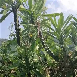定植:以盆栽苗种植成活率高。选择相对避风、阳光充足和排水良好的地块进行种植,株距以60-100厘米为宜,除冬季低温外,全年均可种植,以春季为佳。种植后及时浇透定根水,提高苗木成活率。