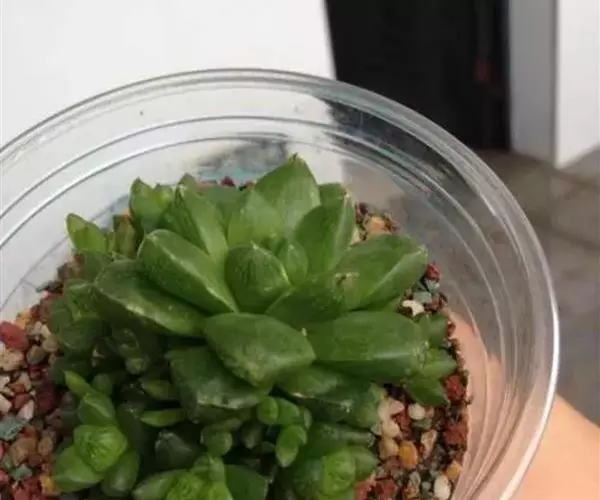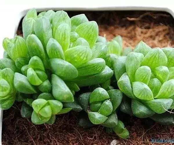 草玉露(学名:Haworthiacymbiformis var.obtusa (Haw.) Baker )隶属于阿福花科、瓦苇属。野外分布于南非开普省南部 。小巧可爱,不会长得很大,却很容易形成群生的姿态。喜光线明亮的生长环境,光线过强时叶片会变成灰棕色,挪至半阴处后可恢复。春秋生长季节,土完全干燥后浇透水。夏季炎热时期须避免暴晒并减少浇水。冬天放在向阳的室内,少浇水多喷雾。
