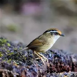 纹喉凤鹛:小型鸟类,体长13-16厘米。头顶和羽冠暗褐色或褐灰色,上体橄榄褐色,飞羽黑褐色,…
