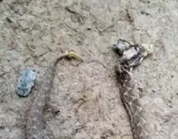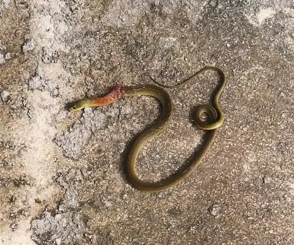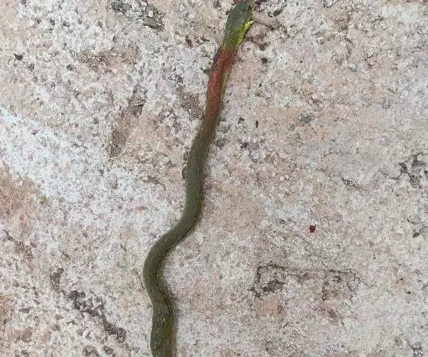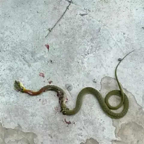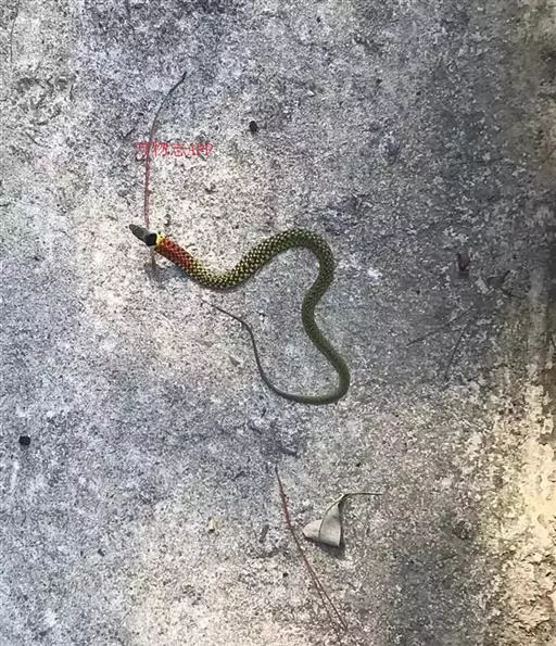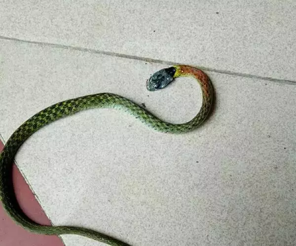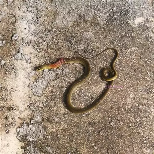 红脖游蛇属游蛇科游蛇属,毒牙无沟、无管,但呈利刃状似应称之为利牙。利牙类毒蛇的毒牙着生在口角内侧上颌的后端,毒牙短,且毒腺不发达,分泌量少,咬人时很难用毒牙咬到人体,除非被咬物被深深纳入口内,否则难以触及利牙,因此,通常不易造成中毒。该蛇的毒素为血液毒素,一旦进入人体即可引起血液失凝,完全脱纤维蛋白状态。