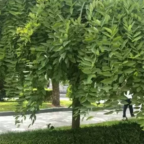 育苗:种子采回后,要及时播种,干藏一个月就丧失发芽力。育苗圃地应选择排水、灌溉条件良好的沙质壤土、黄泥沙土。深耕,使土细,床面平整。条播,播种沟宽5-8厘米,行距20厘米。播后薄覆焦泥灰和细土,以不见种子为准,再盖狼衣草或稻草。每亩播种量1千克左右。约7-10天发芽出土。幼苗生长期要做好松土、除草、间苗、补苗、抗旱等管理工作。迫肥早施,在7月上旬结束。苗木前期生长快,5-7月份苗高生长占全年生长量的72%,根径生长占全年生长量的57%。10约下旬停止生长,12月中、下旬落叶。一年生苗高1米,根径粗1.1米,每亩产苗量1.5-2万株。