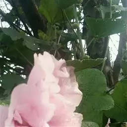 朱槿(学名:Hibiscus rosa-sinensis Linn. ):又名扶桑、佛槿、中国蔷薇。汉语拼音:zhujin。由于花色大多为红色,所以中国岭南一带将之俗称为大红花。常绿灌木,高约1-3米;小枝圆柱形,疏被星状柔毛。叶阔卵形或狭卵形,两面除背面沿脉上有少许疏毛外均无毛。花单生于上部叶腋间,常下垂;花冠漏斗形,直径6-10厘米,玫瑰红色或淡红、淡黄等色,花瓣倒卵形,先端圆,外面疏被柔毛。蒴果卵形,长约2.5厘米,平滑无毛,有喙。花期全年。