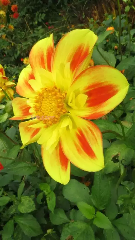 单瓣,花大,花径15厘米,黄色变为橙红色,具深红花心。