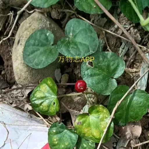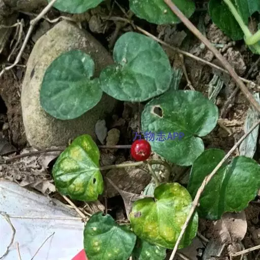 多年生、纤弱、匍匐草本,长可达40厘米或过之;茎下部的节上常生不定根。叶膜质,心状圆形至近圆形,直径约1-3厘米,顶端圆,基部心形,干时黄绿色,两面近无毛;叶脉掌状,5-8条;叶柄长1-5厘米,被伸展柔毛;托叶阔卵形,长1-2毫米。