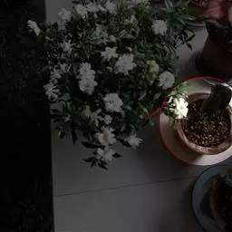 栀子花,花朵簇状约30枚瓣,奶油色,中心黄色;花径12cm;气味果香.