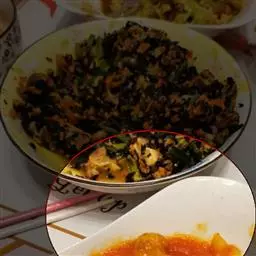 辅料:嫩肉粉少许、生抽1汤勺、麻辣川味酱2茶勺、色拉油2汤勺。