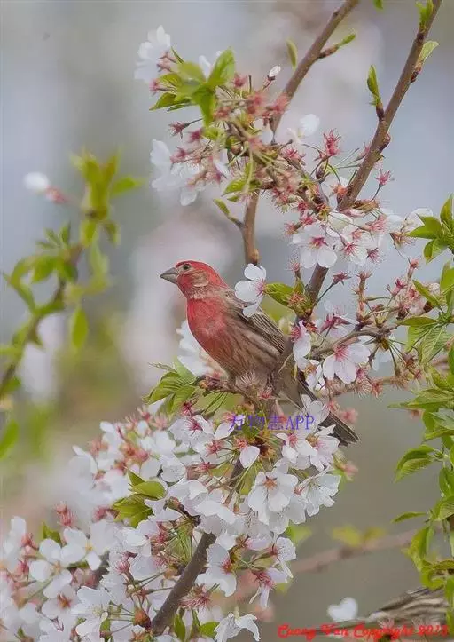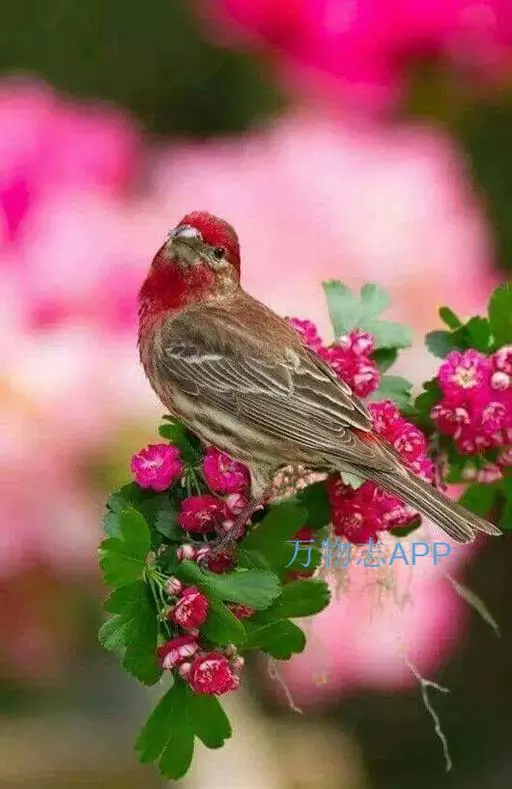 北朱雀,是燕雀科朱雀属鸟类。雄鸟额和头顶前部珠白色具窄的粉红色羽缘,…