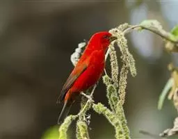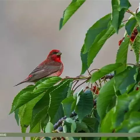酒红朱雀小型鸟类,体长13~15厘米。雄鸟通体深红色,头部深朱红或棕红色,下背和腰玫瑰红色,…