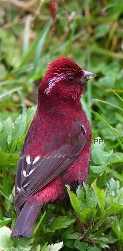 藏朱雀:全长约17-18厘米。雄鸟头部深红色具光辉,喉部暗红色具白色点斑;背部灰白色,各羽具玫瑰红…