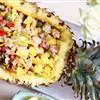 菠萝炒饭是将带皮菠萝纵切,用勺子将菠萝肉取出,切成小丁,…