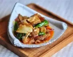 食材准备:猪肝120g,彩色柿子椒100g,酱油少许,油少许,大蒜3粒,生姜1颗,咖喱粉40g,水2杯,辣椒酱1勺