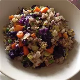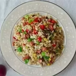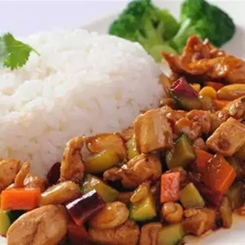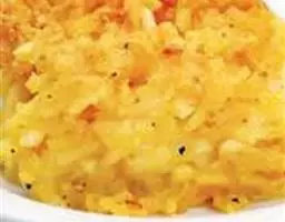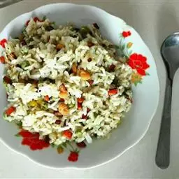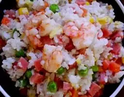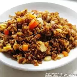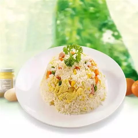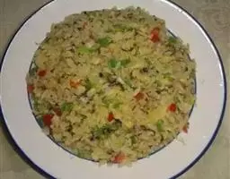 制作:将香米淘净,放入加了咖喱粉的水中浸泡,待米饭着色后,将米饭蒸熟待用。将胡萝卜、洋葱、青菜切丁,锅中放入适量油,烧热后放入胡萝卜、洋葱、青菜丁煸炒,再放入米饭,加盐和味精一同翻炒片刻即可。