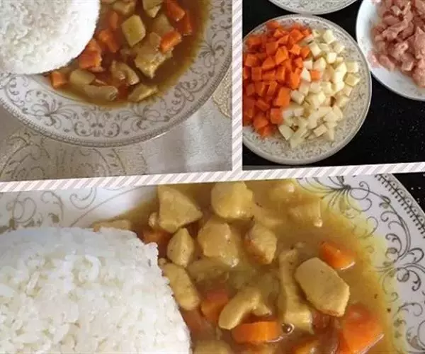 1)咖喱是一种有刺激性气味儿的调料,胃不太好的同学吃的时候一定要注意;另外米饭水不要少,不要硬。