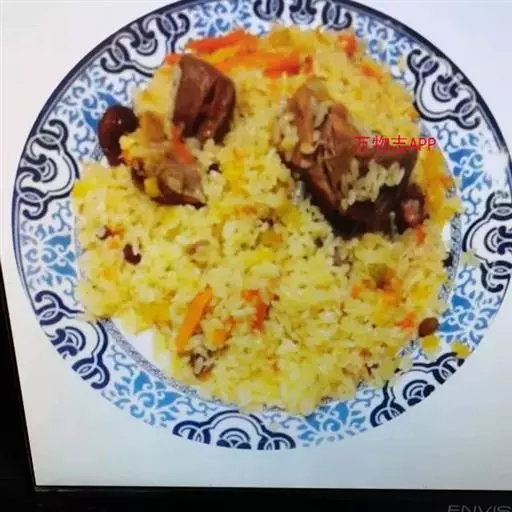 羊肉丁、葡萄干、胡萝卜、洋葱、孜然、大米。