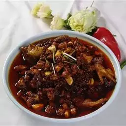 手抓饭 “抓饭”,维吾尔语叫“坡撸(پولۇ)”,是维吾尔、土克曼、乌兹别克等民族兄弟以及中亚国家、俄罗斯联邦等民族执行宾客的风味食品之一。逢年过节、婚丧嫁娶的日子里,都必备“抓饭”待客。他们的传统习惯是先请客人们围坐在炕上,当中铺上一块干净餐布。随后主人一手端盆,一手执壶,请客人逐个淋洗净手,并递给干净毛巾擦干。待客人们全部洗净手坐好后,主人端来几盘“抓饭”,置餐布上(习惯是二至三人一盘),请客人直接用手从盘中抓吃。故取名为“抓饭”。有些家庭接待汉族客人,一般都备有小勺。