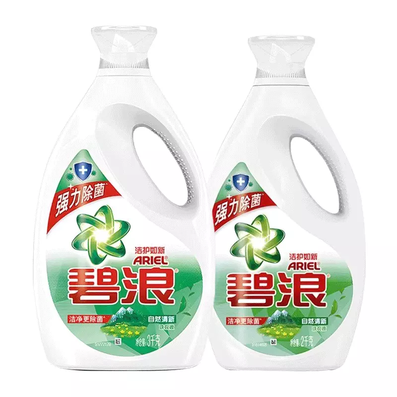 绿色装 蓝色装 2010年7月,碧浪品牌于中国推出“碧浪去渍超净洗衣液”。2011年11月,碧浪洗衣液全线升级,推出绿色装洁护如新洗衣液、蓝色装清雅茉莉香型洁护如新洗衣液。同时,碧浪选择华人天后小S作为品牌代言人。