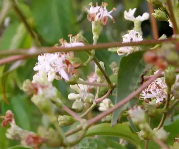 七子花树身洁白光滑,其美不亚于紫薇;叶大小适中,密而有序;花形奇特,花色红白相间,繁花集于一长序,远望酷似群蜂采蜜,蔚为奇观。