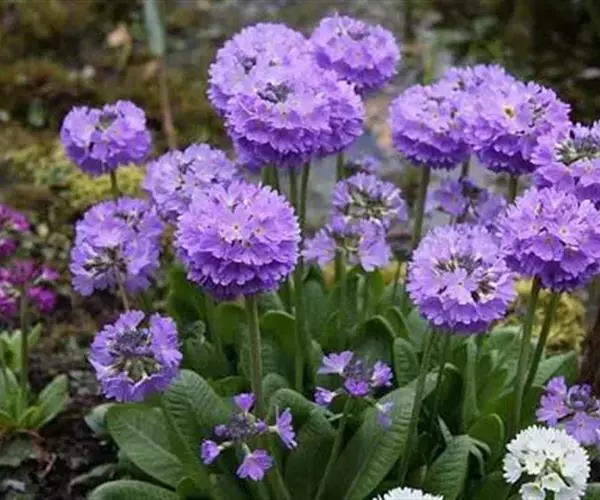 球花报春(学名:Primula denticulata Smith):春花科报春花属多年生草本植物,粗短的根茎。叶多枚形成密丛,叶片矩圆形至倒披针形,边缘具小牙齿和缘毛,上面被短柔毛或变无毛,下面沿叶脉被毛或近于无毛,花葶高可达30厘米,果期高可达45厘米,花序近头状,花直立;苞片多数,披针形,花梗极短;花萼狭钟状,裂片窄长圆状披针形,常染紫色,花冠蓝紫色或紫红色,极少白色,短花柱花:蒴果近球形,短于花萼。4-6月开花。