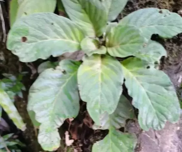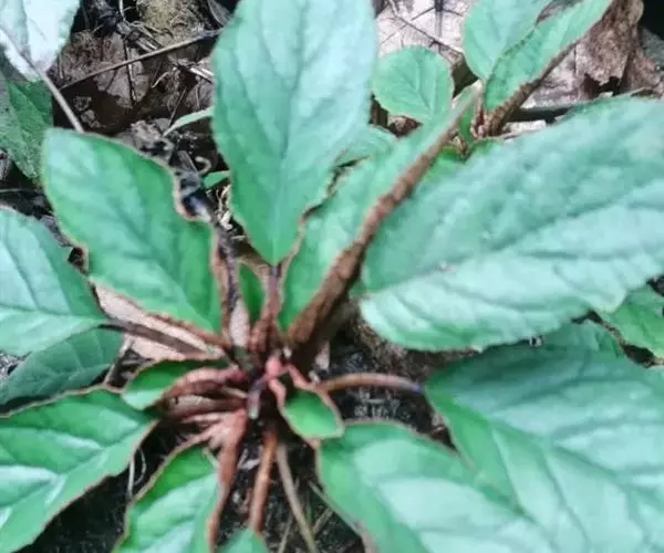 多年生草本。叶全部基生,具柄;叶片长圆状椭圆形,长2-8.5厘米,宽1-5厘米,顶端微尖或钝,基部圆形或稍心形,或近楔形,边缘具钝齿至近全缘,上面被贴伏短柔毛,下面被淡褐色绢状绵毛至近无毛,侧脉每边7-9条,在下面隆起,密被褐色绢状绵毛;叶柄长2-4厘米,密被褐色绢状绵毛。