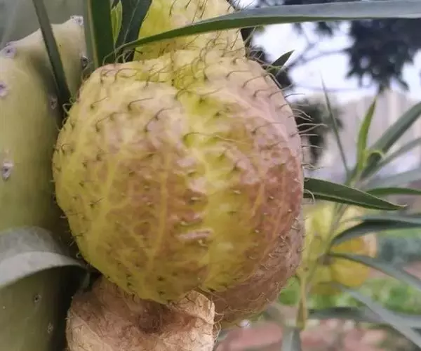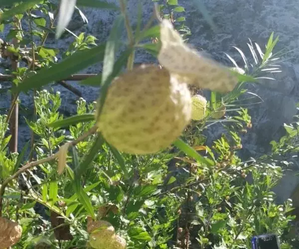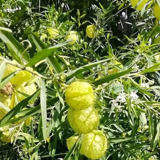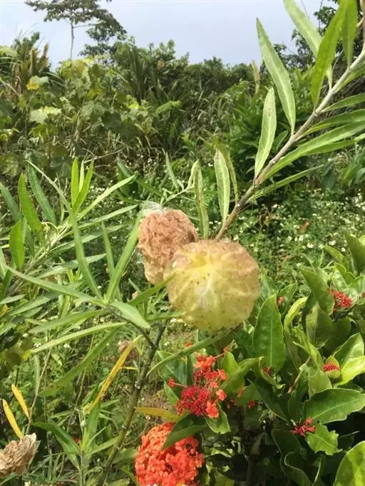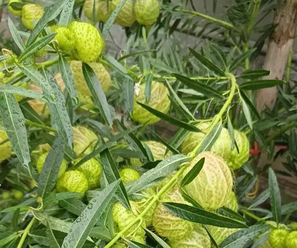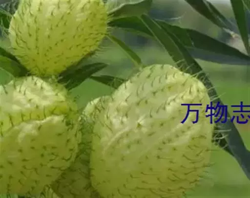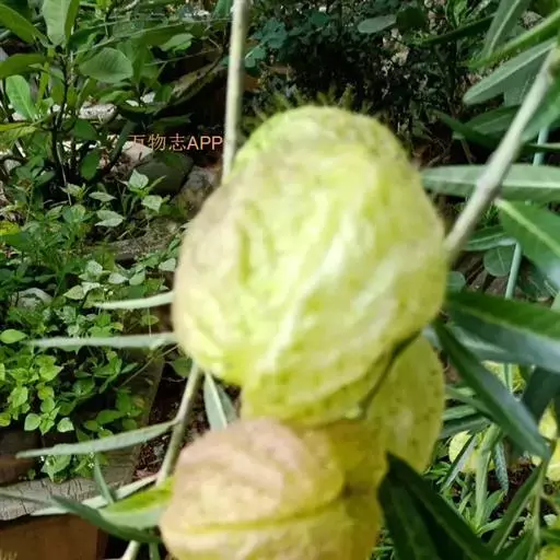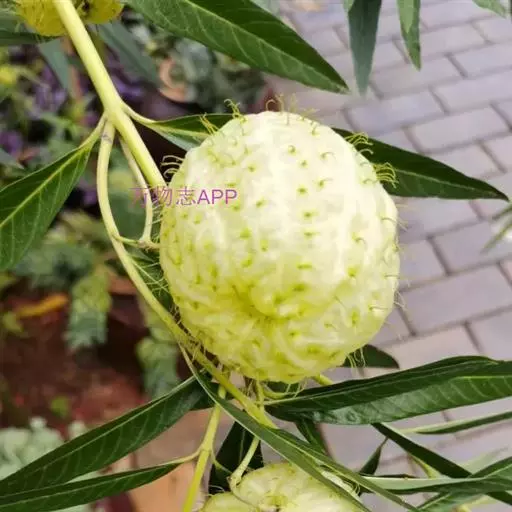 钉头果(Gomphocarpus fruticosus),又名气球花、气球果、棒头果、风船唐绵等,萝摩科钉头果属常绿灌木。原产热带非洲,华南植物园已有引种栽培。气球果的果实奇特,为黄绿色卵圆形或椭圆形果泡,果表有粗毛,似用钉子锤入,故名钉头果 。