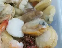 5.把鸡蛋倒入混合均匀,加点鸡精即可出锅。